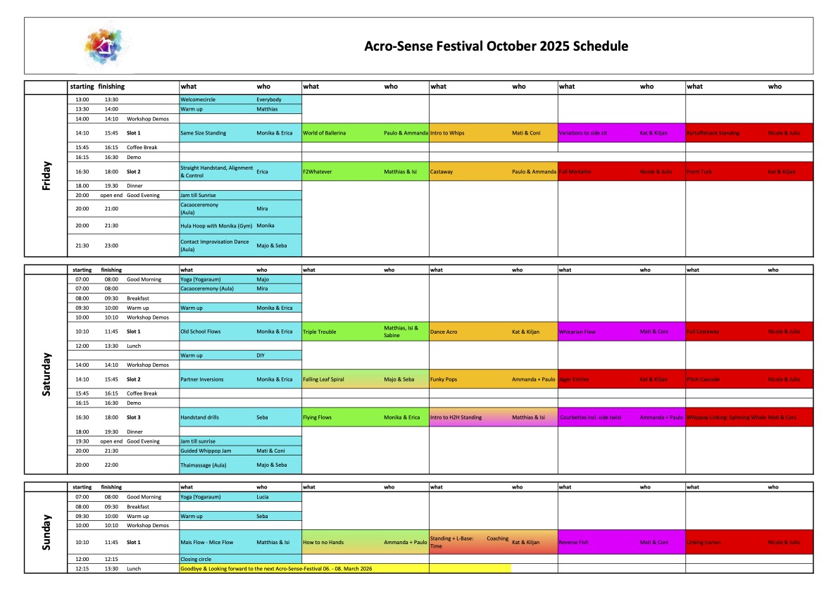 The Workshopplan for Spring edition 26 will be published here before the festival. Until then you can have a look at our workshopplan from the last autumn edition to get some insights:)) Looking forward to play with you!